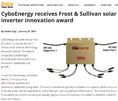 Based on its recent research on the solar inverter market, Frost & Sullivan presents CyboEnergy with the 2013 Global Frost & Sullivan Award for Product Differentiation Excellence. CyboEnergy's innovative inverter, CyboInverter, combines the merits of a central inverter and a micro inverter and, thereby, successfully addresses the shortcomings of existing inverter types. Frost & Sullivan will present the award to CyboEnergy at its "2014 Excellence in Best Practices Awards Gala" to be held in New Orleans, Louisiana USA, on January 14, 2014.