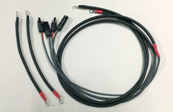 (1) 3 battery wires with ring terminals to connect 4 x 12V batteries in series, (2) Four pairs of 6 feet battery cables with MC-4 Connectors and ring terminals to connect the 48V battery to 4 CyboInverter channels. |