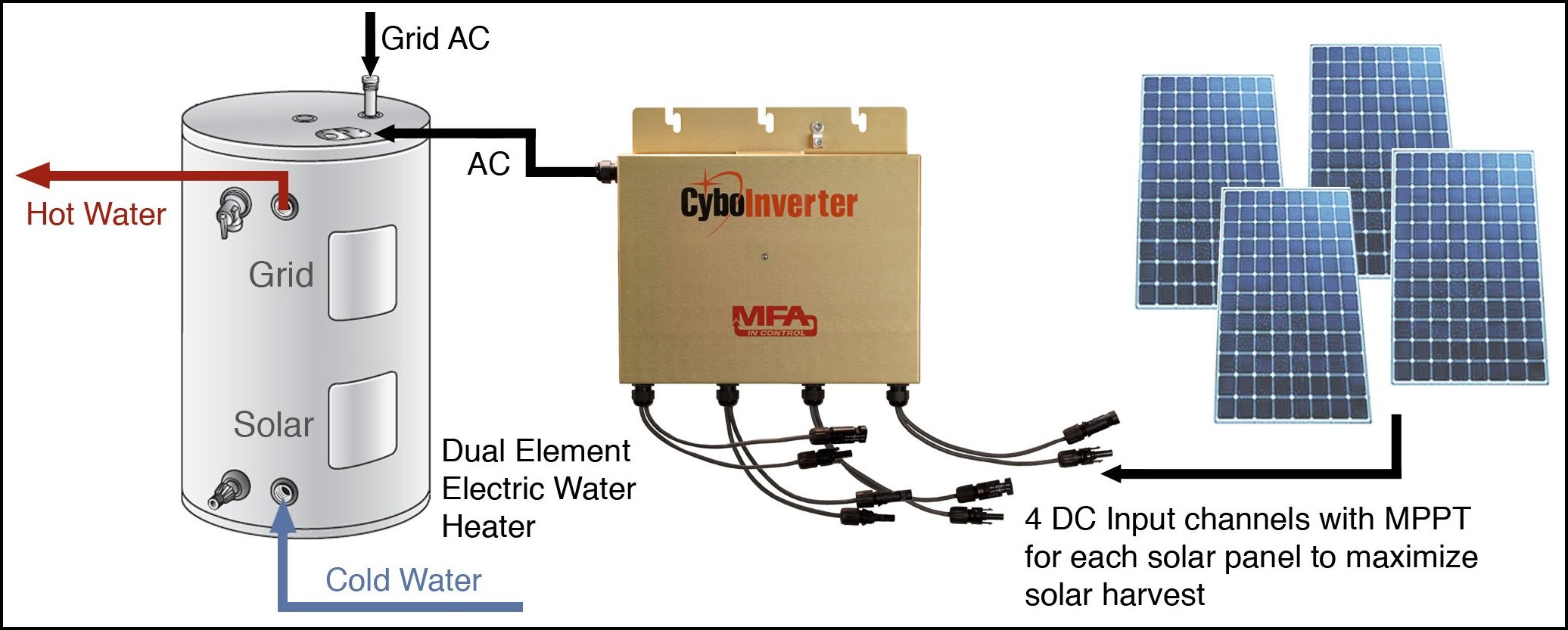 Dr. Cheng added, “Our goal of this design guide is to show that a battery-less off-grid solar system is affordable, easy to install, and delivers strong ROI. For many people, solar water heating is the simplest first step toward energy independence.” The Solar PV Water Heating System Design Guide is downloadable from CyboEnergy’s website www.cyboenergy.com. Customers and installers may contact CyboEnergy to request a copy or discuss their solar system design needs.