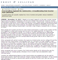 Based on its recent research on the solar inverter market, Frost & Sullivan presents CyboEnergy with the 2013 Global Frost & Sullivan Award for Product Differentiation Excellence. CyboEnergy's innovative inverter, CyboInverter, combines the merits of a central inverter and a micro inverter and, thereby, successfully addresses the shortcomings of existing inverter types. Frost & Sullivan will present the award to CyboEnergy at its "2014 Excellence in Best Practices Awards Gala" to be held in New Orleans, Louisiana USA, on January 14, 2014.