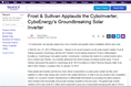 CyboEnergy was selected by Frost & Sullivan to receive the 2017 "Global Solar Inverter Technology Innovation Award." The award recognizes CyboEnergy's achievements and excellence in innovation, leadership and growth. |