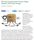 CyboEnergy, Inc. announced that it has released the off-grid CyboInverter H model, which is specially designed to power electric water heaters or electric heating elements. |