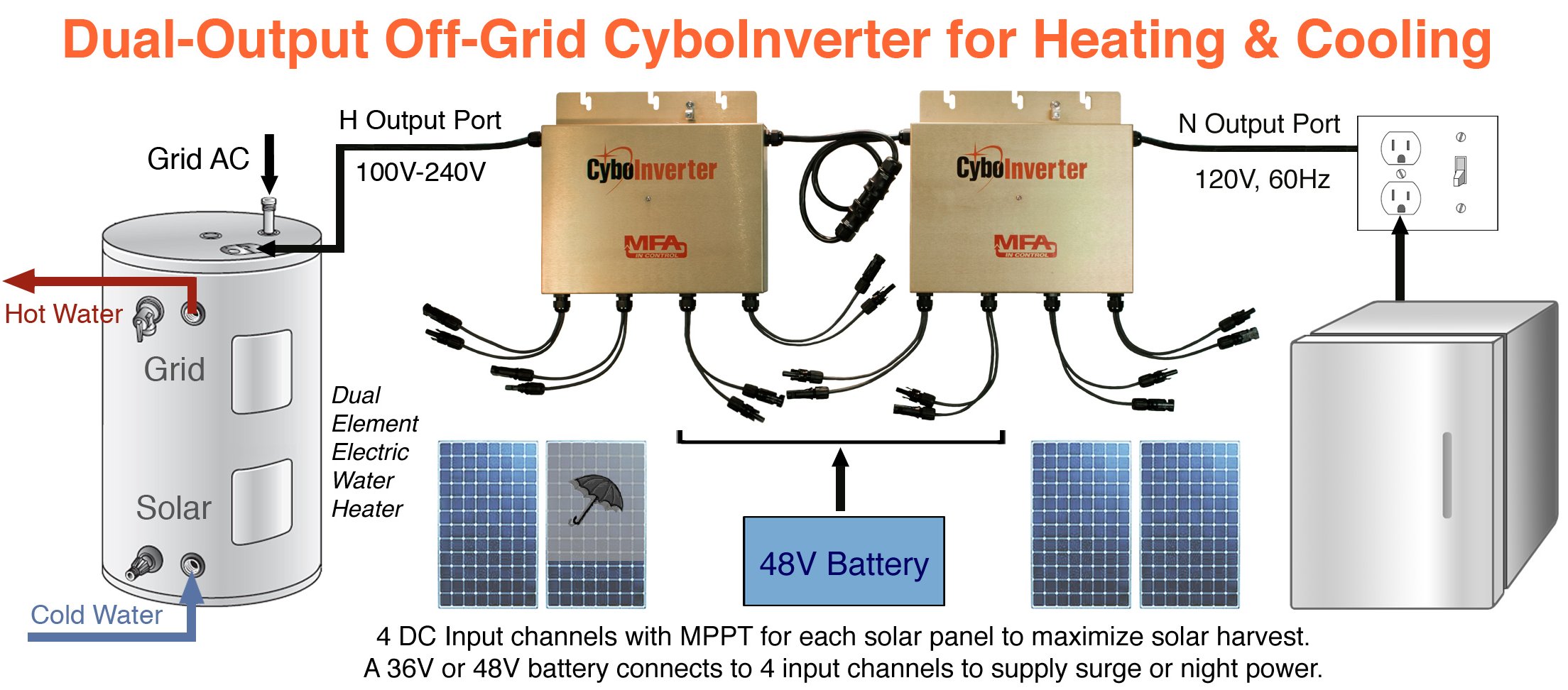 - Specially Designed for Powering Electric Water Heaters in Off-Grid Mode 1 or AC Loads in Mode 2