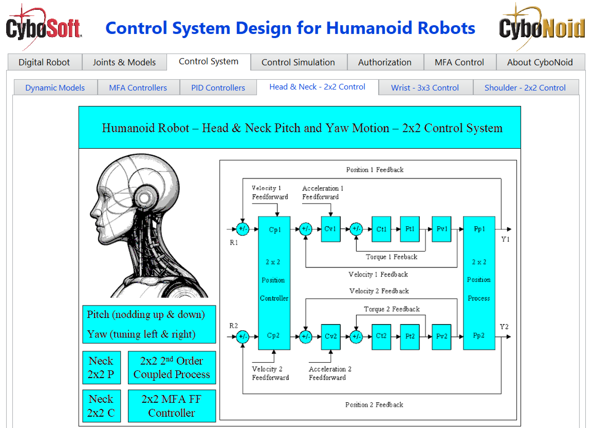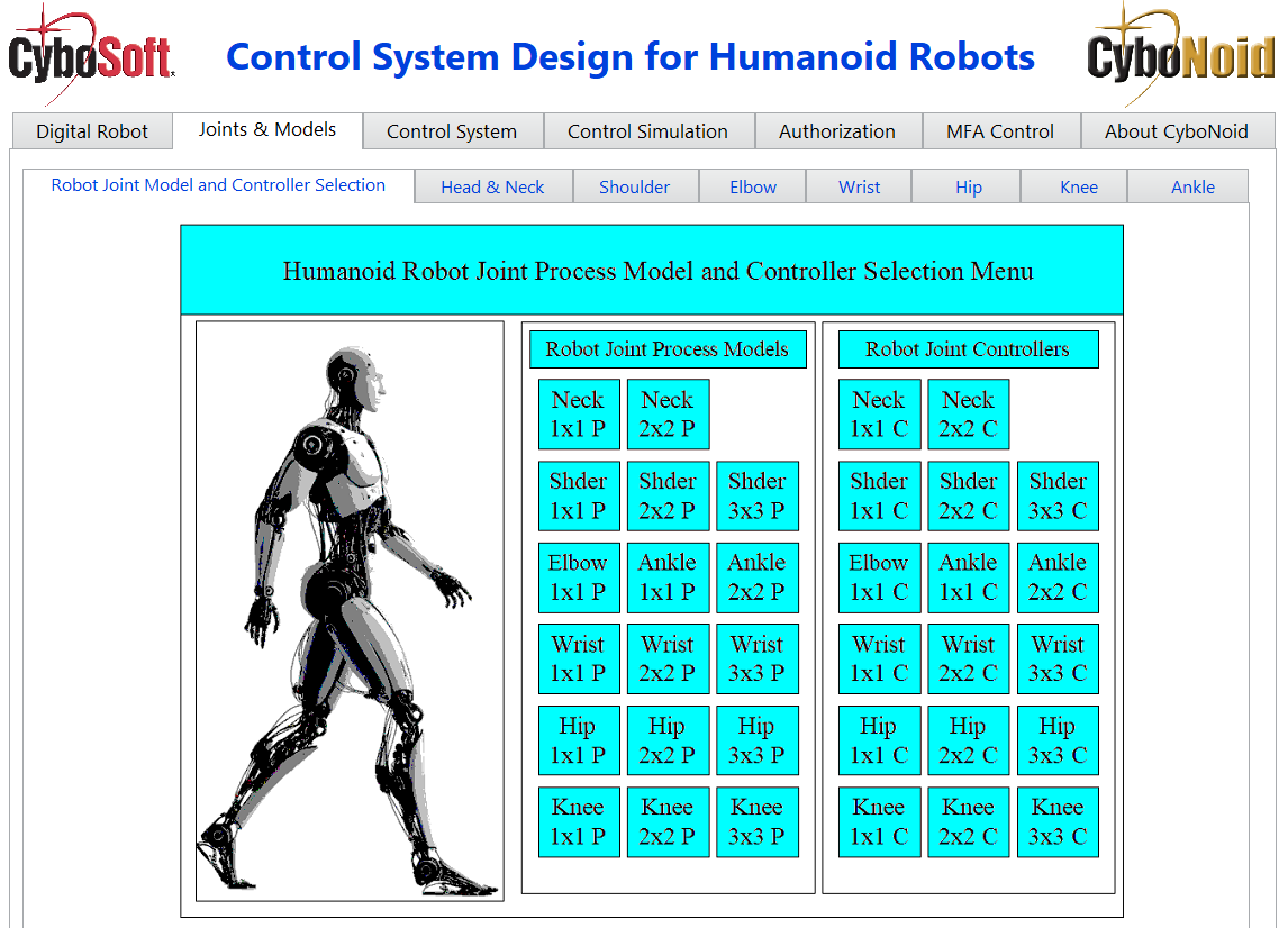 July 22, 2024 – CyboSoft (Rancho Cordova, California), the developer of Model-Free Adaptive (MFA) control technology and products, announced today that it is introducing CyboNoid, a patent-pending control system design, simulation, and implementation software for Humanoid Robots. |